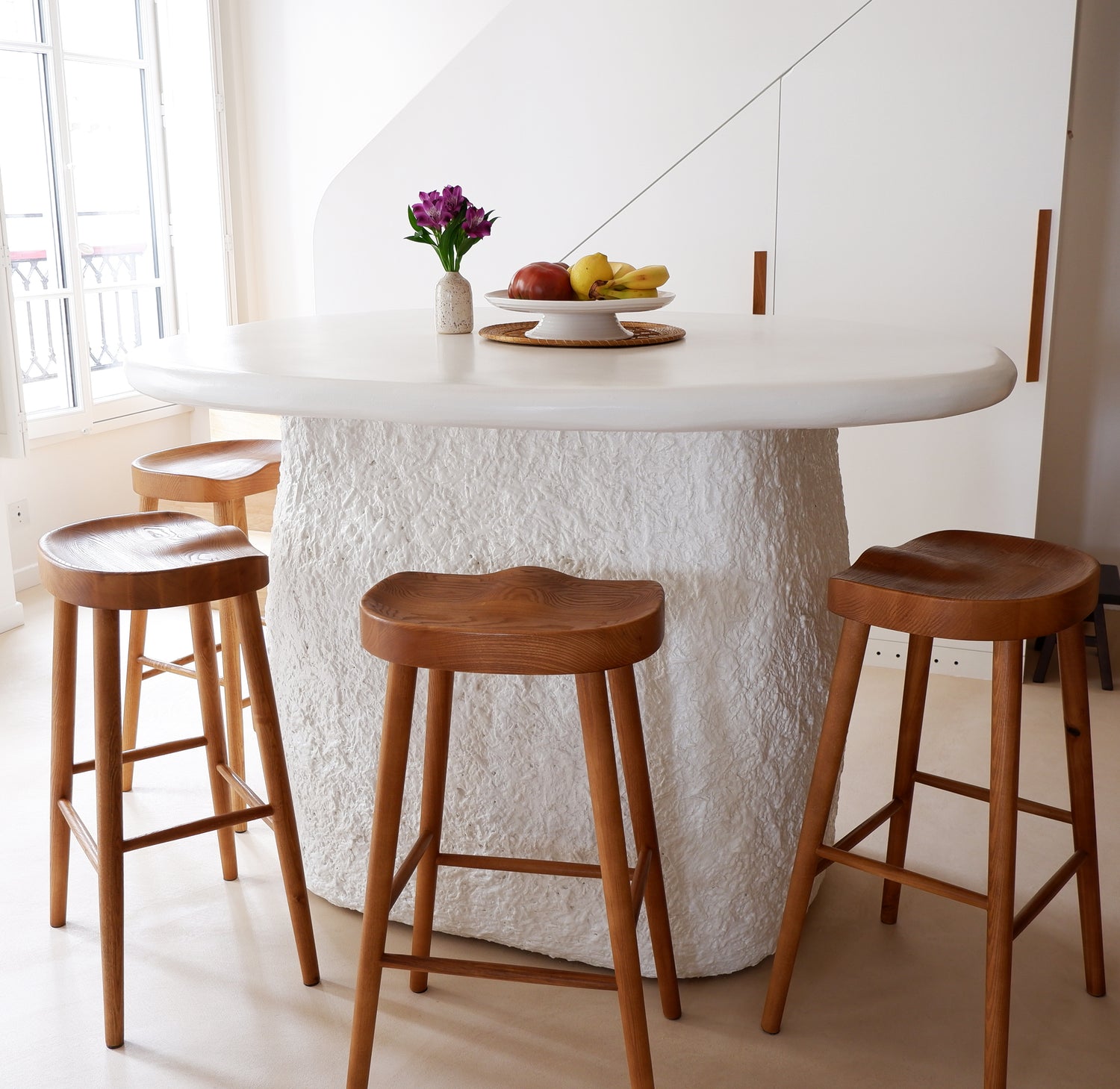 As each piece begins to take shape, it becomes much more than simple furniture. It’s a creation designed to blend in with every day life, an artistic statement which tells its own unique story. The organic shapes, the repeated hand patterns, the slight imperfections and the multifaceted textures of the French biomaterials all combine harmoniously to bring those unique creations to life and epitomise authenticity and artistic energy.